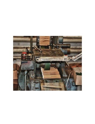 El lápiz se fabrica a partir de un bloque de madera que se divide en tablitas con hendiduras para colocar minas de grafito, luego se pegan las tablitas juntas con las minas entre ellas y se pinta, barniza y marca cada lápiz con su dureza antes de afilar uno de sus extremos.