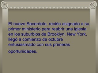 El sacerdote recién asignado a una iglesia en Brooklyn se esforzó por repararla antes de Navidad a pesar de una tormenta que causó daños. Compró un mantel en una venta de caridad que quedaba perfecto para cubrir un agujero, el cual resultó haber sido hecho por la esposa de un hombre que la iglesia también reunió con su esposo, del que había estado separada por 35 años desde que huyeron de los Nazis.