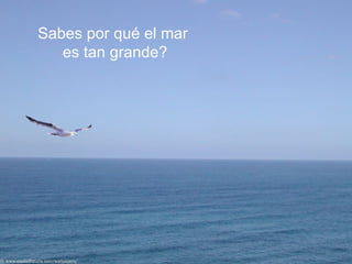 El documento habla sobre la humildad y grandeza del mar. A pesar de ser el cuerpo de agua más grande, el mar se coloca abajo de los ríos y acepta recibir su agua. Si quisiera estar encima de los ríos, el mar se convertiría en una isla aislada. También discute que la pérdida, derrota y muerte son parte de la vida, y es imposible vivir sin ellas. Aprender a perder nos enseña a no dejar que otros nos controlen.