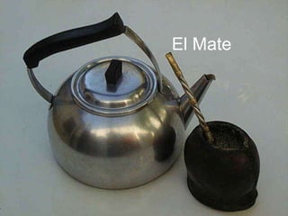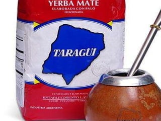El documento describe la historia y el uso tradicional del mate en Argentina, Paraguay y Uruguay. Los guaraníes bebían mate con agua fría y hierbas, mientras que los conquistadores lo adoptaron usando agua caliente y azúcar. Hoy en día, el mate se consume de forma comunitaria y los ingredientes agregados transmiten mensajes sutiles entre hombres y mujeres.
