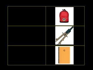 Este documento lista el vocabulario relacionado con el material escolar en español, incluyendo artículos como bolígrafos, lápices, cuadernos, diccionarios, carpetas, estuches, gomas de borrar, tijeras y más. También incluye herramientas como reglas, compases y grapadoras.