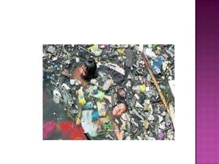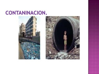El documento habla sobre cómo el medio ambiente se ve afectado negativamente por la tala de árboles, la quema de basura, los desechos tóxicos y la contaminación del aire y agua procedentes de la basura, los vehículos y otros factores. También menciona formas de prevenir esta contaminación, como no arrojar basura, no cortar árboles y cuidar el medio ambiente para las generaciones futuras.