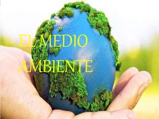 El documento define el medio ambiente como el conjunto de componentes físicos, químicos y biológicos que rodean a las personas y la sociedad. Explica que la principal problemática del medio ambiente es la contaminación causada por los desechos humanos, y también menciona que la tala de árboles y los incendios forestales son otras amenazas porque destruyen hábitats y afectan la atmósfera.