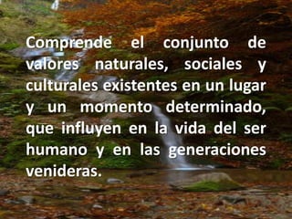 El documento habla sobre el medio ambiente y las medidas para protegerlo. Define el medio ambiente como el conjunto de valores naturales, sociales y culturales que influyen en la vida humana. Explica que el efecto invernadero y el calentamiento global se han convertido en problemas mundiales debido al mal uso de los recursos naturales por los humanos. Luego enumera 10 medidas para cuidar el medio ambiente como desconectar aparatos electrónicos cuando no se usen, apagar luces innecesarias, usar el agua de forma racional y participar en camp