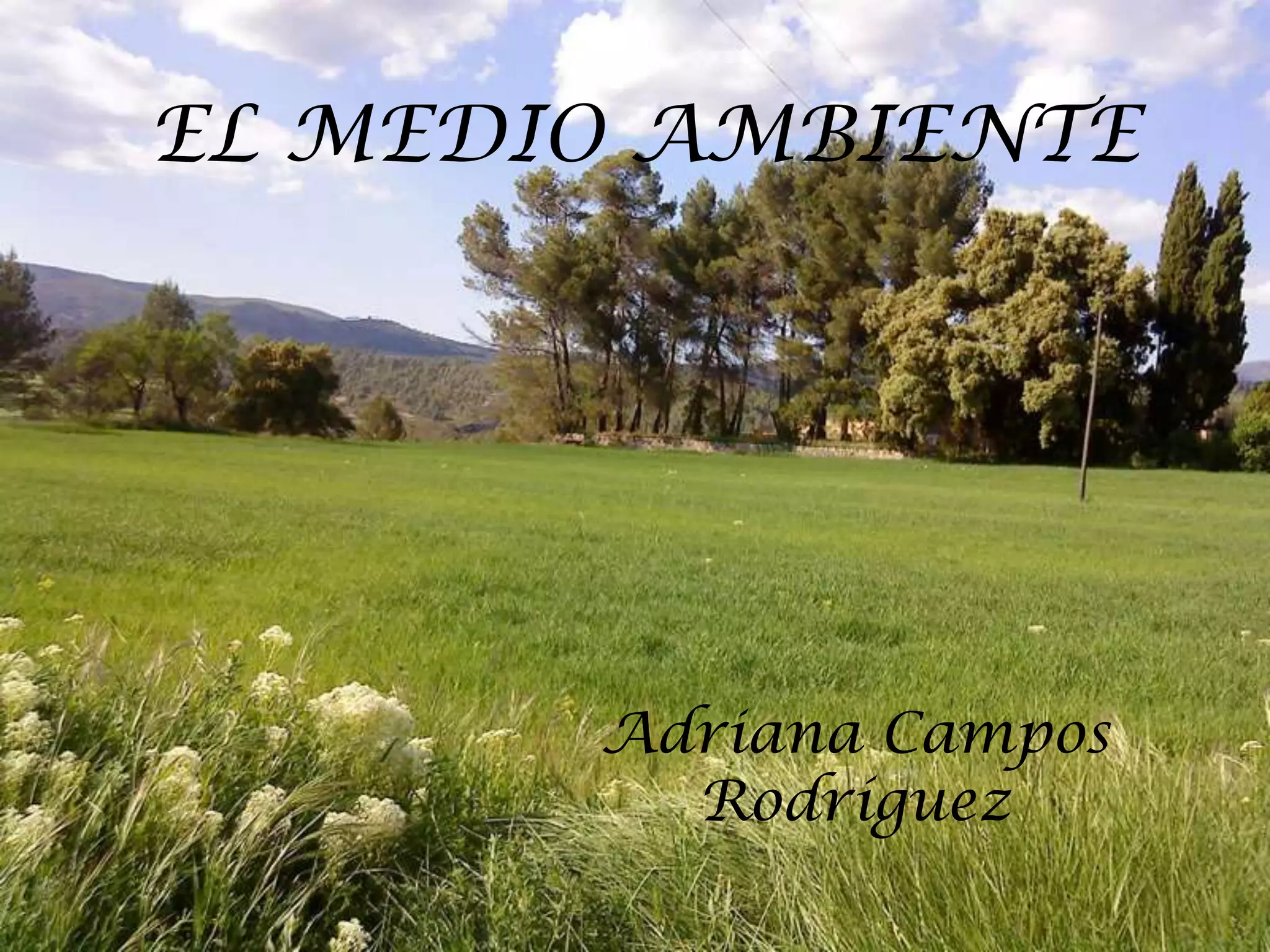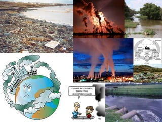 El documento describe los principales componentes del medio ambiente como la atmósfera, el agua y el suelo, y cómo los organismos vivos dependen de ellos. También explica que la contaminación es la alteración nociva del medio ambiente por la introducción de agentes extraños, y menciona que el 5 de junio se celebra el Día Mundial del Medio Ambiente para crear conciencia sobre este tema.