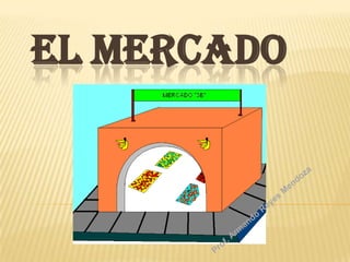 Este documento define el mercado y describe diferentes tipos de mercados, incluyendo mercados de competencia perfecta e imperfecta, clases de mercado como mayorista y minorista, y condiciones de monopolio. Explica que originalmente el mercado era el lugar donde compradores y vendedores intercambiaban productos, pero ahora puede ser físico o no físico. Describe las características de mercados de competencia perfecta e imperfecta.