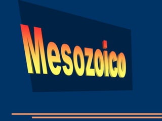 El documento resume el período Mesozoico que comprende desde hace 250 a 65 millones de años, dividido en Triásico, Jurásico y Cretácico. En el Triásico surgieron los primeros mamíferos y aves. Los dinosaurios dominaron la tierra durante el Jurásico. En el Cretácico aparecieron las primeras plantas con flores mientras los dinosaurios se extinguieron.