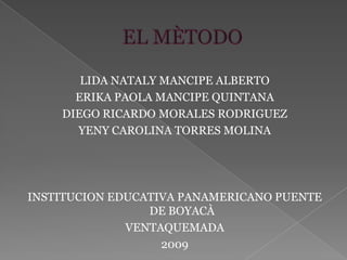 El documento presenta el método como un procedimiento de reflexión filosófica que guía la comprensión del mundo, enfatizando su importancia para el autoconocimiento y la superación de dificultades. Se describen diversas clases de métodos, incluyendo inductivos, deductivos y filosóficos, cada uno con características específicas y aplicaciones en la búsqueda de conocimiento. Además, se aborda el problema del método en la búsqueda de la verdad y su necesidad de ser universal en la investigación filosófica.