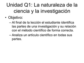 Este documento describe los pasos del método científico utilizado en la investigación científica. Estos incluyen 1) observación, 2) formulación de hipótesis, y 3) experimentación para probar las hipótesis mediante la recolección y análisis de datos. El documento también explica conceptos clave como variables dependientes e independientes y diferentes tipos de diseños de investigación como diseños experimentales y no experimentales.