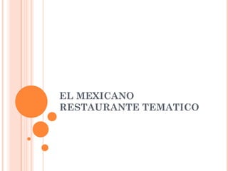 Este documento presenta un plan de negocios para un restaurante temático mexicano llamado "El Mexicano" en Ibarra, Ecuador. El restaurante ofrecerá comida mexicana de calidad a precios accesibles, con un enfoque en estudiantes de 12 a 25 años. El documento describe la misión, visión, ubicación, investigación de mercado, ventajas competitivas, publicidad, fuentes de ingreso y canales de comercialización del restaurante.