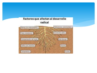 El documento describe el microhábitat como el lugar específico donde ocurren interacciones entre condiciones, microorganismos y una planta, que modifican mutuamente el ambiente. Explica que la rizosfera, la región alrededor de la raíz, contiene una alta densidad de microorganismos que se comunican con la planta a través de exudados radiculares, los cuales dependen de factores como la especie y estado de la planta y las condiciones ambientales.