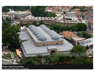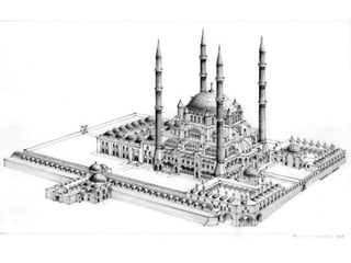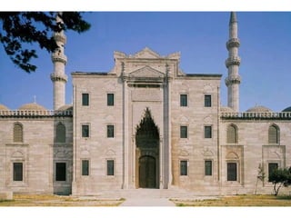 Mimar Sinan fue el arquitecto más destacado del Imperio Otomano, viviendo entre 1490-1588. Originalmente cristiano de origen armenio o griego, fue convertido al Islam y se unió a los jenízaros, el cuerpo militar de élite del sultán. Demostró habilidades en ingeniería militar y construyó fortalezas y puentes. Conoció diversos estilos arquitectónicos europeos y orientales a través de las campañas militares. A los 50 años, el sultán Solimán el Magnífico lo