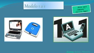 El documento detalla el modelo educativo 1 a 1, donde cada alumno tiene acceso a una computadora, promoviendo la interacción y el aprendizaje autónomo. Se presentan ejemplos de implementación en países como Uruguay, Chile, Argentina y Paraguay, destacando la reducción de la brecha digital y la mejora en la calidad educativa. Además, se enfatiza el papel del docente como guía y mediador en el uso de tecnologías para favorecer el aprendizaje.