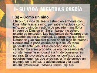 Jesús nos dejó un modelo ejemplar de liderazgo a través de su vida, enseñanzas y relaciones con los demás. Pasó sus años de crecimiento en armonía con Dios y sujeto a las mismas tentaciones que nosotros. Su vida espiritual se centró en la oración constante, el estudio de las Escrituras y la intercesión por los demás. En todas sus interacciones mostró paciencia, compasión y cortesía, compartiendo las cargas de los demás como ejemplo de amor.