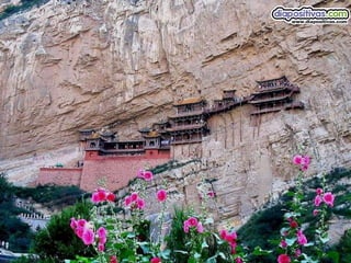 El Monasterio Suspendido Xuan Kong Si se construyó en el año 491 sobre un acantilado cerca de Datong, China. Está compuesto por diversos pabellones unidos por corredores y escaleras que se funden con el entorno natural. Más de 1400 años después, el monasterio aún sobrevive gracias a reconstrucciones durante las dinastías Ming y Qing, y es conocido por albergar elementos budistas, taoístas y confucionistas de manera inusual.