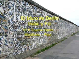 El documento describe la construcción y caída del Muro de Berlín. Se construyó de forma repentina en la noche del 12 al 13 de agosto de 1961 para detener el flujo de refugiados de Berlín Este a Occidental. Permaneció durante 28 años hasta que cayó en la noche del 9 de noviembre de 1989 debido a las protestas en contra de la división de Alemania y la falta de libertad en el Este. Uno de los intentos más conocidos de cruzar el muro fue el de Peter Fechter, quien fue baleado pero no recibió ayuda