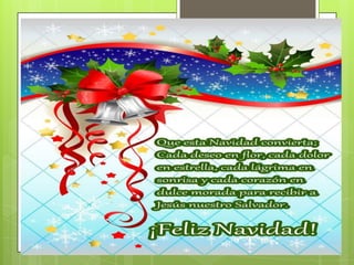 El documento contiene una colección de mensajes navideños cortos con deseos de paz, amor, felicidad y prosperidad. Incluye frases sobre la magia de la Navidad, extrañar a seres queridos y la importancia del amor y la unión familiar en estas fechas.