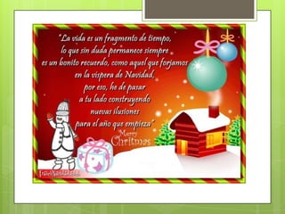 El documento contiene una colección de mensajes navideños cortos con deseos de paz, amor, felicidad y prosperidad. Incluye frases sobre la magia de la Navidad, extrañar a seres queridos y la importancia del amor y la unión familiar en estas fechas.