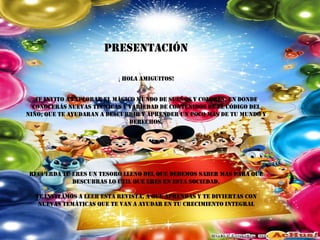 1) El documento invita a los niños a explorar un mundo mágico de sueños y colores a través de la revista "El código del niño" para descubrir y aprender sobre su mundo y derechos.
