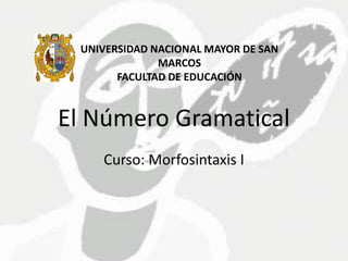 Este documento describe las reglas de formación del plural en español. Explica que el número gramatical se refiere a singular o plural y es inherente en sustantivos, pronombres, adjetivos, determinantes y verbos. Luego detalla las diferentes categorías de sustantivos según su forma en singular o plural, como sustantivos contables e no contables, y sustantivos con significados diferentes en cada número. Finalmente, resume las reglas generales para la formación del plural dependiendo de la terminación del sustantivo, incluyendo excepciones y detalles sobre compuestos, nombres pro