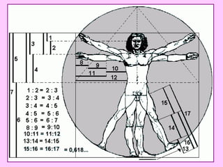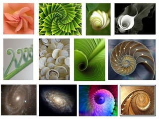 El documento habla sobre el número áureo o razón dorada, que representa la división armónica de un segmento. Tiene valor aproximado de 1,618 y se encuentra presente en la naturaleza, arquitectura y arte. La serie de Fibonacci también está relacionada con este número, y ambos tienen importancia debido a su presencia en proporciones humanas y patrones de crecimiento.