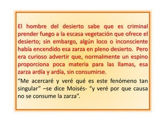 Dios se revela a Moisés en el desierto a través de una zarza ardiente, encargándole la misión de liberar al pueblo de Israel de Egipto. Al preguntarle Moisés por su nombre, Dios se presenta como 'Yavé', señalando su naturaleza eterna y única. Este nombre, esencial para la invocación divina, fue un privilegio exclusivo otorgado a Moisés y a través de él al pueblo de Israel.