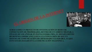 El internet tuvo su origen en un proyecto militar de finales de los años 60, diseñado para crear un sistema de comunicación más seguro mediante la conmutación de paquetes. A lo largo de las décadas, el acceso a internet se expandió desde la comunidad científica hacia un uso masivo, logrando conectar millones de usuarios y redes en todo el mundo. Hoy en día, el internet es un medio fundamental en todos los aspectos de la vida, facilitando la comunicación, la educación y el entretenimiento.