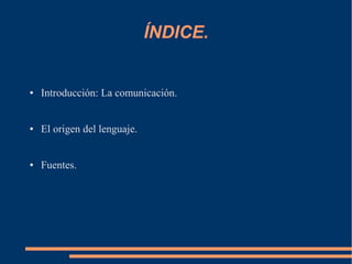 El documento discute el origen del lenguaje humano. Sugieren que la primera conversación pudo haber ocurrido hace 2.5 millones de años cuando los humanos primitivos comenzaron a usar herramientas de piedra. Estas herramientas condujeron al desarrollo de la comunicación y la enseñanza entre los humanos, lo que eventualmente llevó al lenguaje moderno.