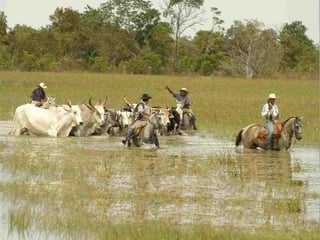 El Pantanal es un gran humedal ubicado en Brasil, Bolivia y Paraguay que se inunda periódicamente. Cubre una superficie similar a la mitad de Francia y alberga una gran diversidad de flora y fauna con más de 3500 especies de plantas, 650 de aves, 300 de peces, 95 de mamíferos y 50 de reptiles. Ha sido declarado Reserva de la Biosfera y Patrimonio Natural de la Humanidad por la UNESCO debido a su importancia ecológica.