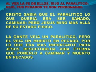 El pasaje de Marcos 2:1-12 narra la sanación de un paralítico por parte de Jesús, quien, al ver la fe de los que lo llevaron, primero perdona sus pecados antes de curarlo físicamente. Este acto demuestra la autoridad de Jesús para perdonar pecados y enfatiza la importancia del perdón divino sobre la sanidad física. La enseñanza se extiende a que las ataduras del pecado pueden paralizar a las personas en la actualidad, y que Jesús, permaneciendo el mismo, puede ofrecer liberación y vida abundante.