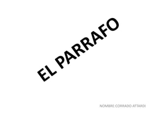 Este documento define el párrafo y describe sus características y tipos. Un párrafo es un grupo de oraciones relacionadas que expresan una idea principal. Las características incluyen que está formado por una o más oraciones y mantiene la unidad y coherencia del tema. Existen varios tipos como narrativos, descriptivos, argumentativos y expositivos. Finalmente, se describen tres formas de redactar párrafos.