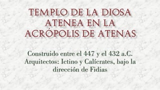 El Partenón fue construido en Atenas entre 447-432 a.C. bajo la dirección del arquitecto Fidias. Sirvió como templo de la diosa Atenea durante casi 800 años antes de ser convertido en iglesia cristiana y mezquita musulmana. En 1687, una explosión de pólvora destruyó gran parte de la estructura, y en el siglo XIX, Lord Elgin se llevó muchas de sus esculturas al Museo Británico.