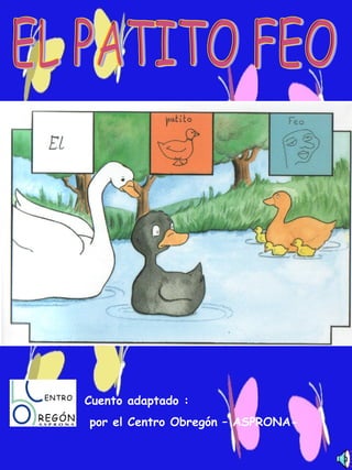 El patito negro nació en una granja donde los otros animales se burlaban de él por su color. Se fue llorando y se durmió en el campo, despertando junto a un estanque con cisnes que lo invitaron a nadar con ellos. Al verse en el agua, el patito se dio cuenta de que ya no era feo, sino un hermoso cisne blanco.