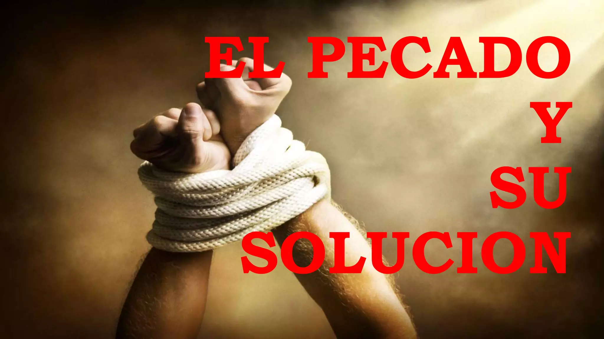 El documento habla sobre el pecado, sus consecuencias y su solución definitiva en Jesucristo. Explica que el pecado es la transgresión voluntaria de una ley y nos impide acercarnos a Dios, causando la muerte eterna. Jesucristo murió por nuestros pecados y su resurrección nos da justificación. El arrepentimiento, la conversión y el bautismo son acciones importantes para ser perdonados y acercarnos a Dios de nuevo.
