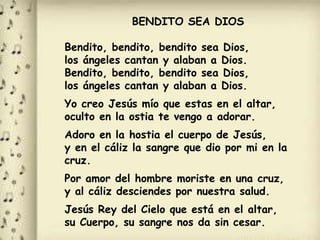 El documento es una extensa oración y reflexión sobre la adoración a Jesús en el Santísimo Sacramento y la importancia del perdón en la vida cristiana. Se enfatiza la necesidad de perdonar a otros y a uno mismo como un acto de amor y liberación. Además, se incluye una oración de perdón a Dios y a diversas personas que han causado dolor, junto con alabanzas a Dios y alabanza del Santísimo Sacramento.