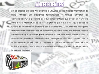 finanzas, mercado, empresas, etc.). Su información es nacional e internacional.