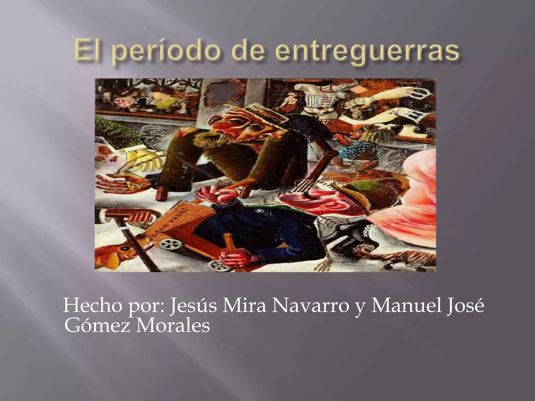 Este documento describe el período de entreguerras desde el final de la Primera Guerra Mundial hasta el inicio de la Segunda, caracterizado por gran inestabilidad política y económica. Se destacan tres hechos claves: la Revolución Rusa de 1917 que creó la Unión Soviética, el crack bursátil de 1929 en EEUU que desencadenó la Gran Depresión, y el ascenso de regímenes totalitarios como el nazismo en Alemania y el fascismo en Italia.
