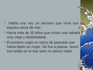 El anciano atrapa un pez de oro mágico que le ofrece concederle cualquier deseo. Inicialmente el anciano no pide nada, pero su esposa le insiste en pedir pan, un barreño nuevo y luego una casa nueva de mayor tamaño. Cada vez que el anciano le pide algo al pez, este se lo concede. Sin embargo, los deseos de la esposa no tienen fin y termina pidiendo volverse joven y reina. Al final, la esposa desea dominar a todos los peces del mar, enfureciendo al pez dor