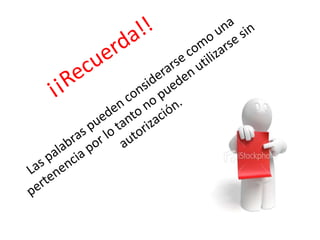Este documento define el plagio como usar palabras o ideas de otras personas sin darles crédito, y explica que se puede evitar el plagio mediante la referenciación adecuada de las fuentes, el seguimiento de normas bibliográficas y la inclusión de una bibliografía. También recomienda parafrasear en lugar de copiar directamente y citar siempre las fuentes de información que no sean de conocimiento común.