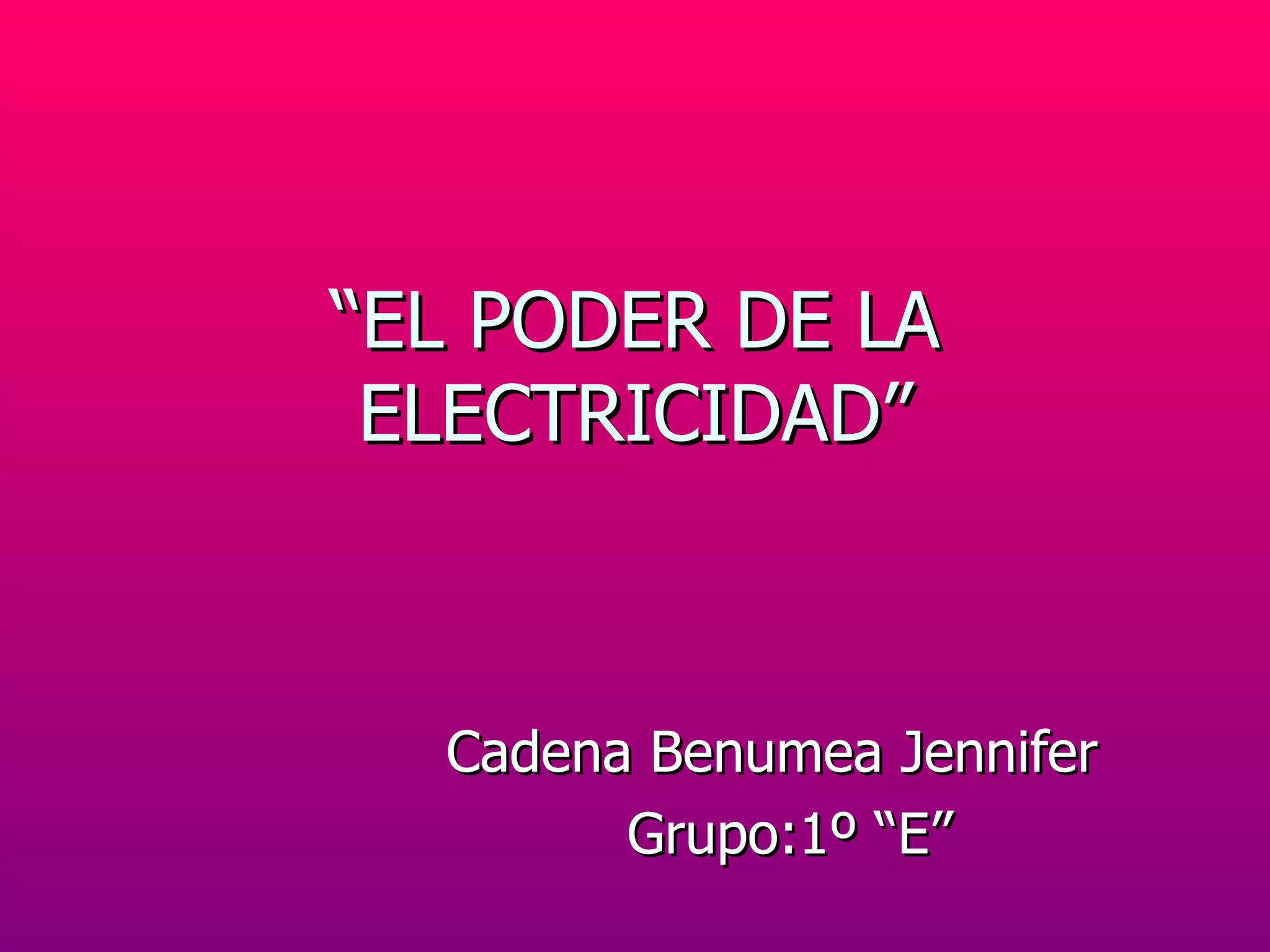 La electricidad se genera al transformar diferentes tipos de energía como química, mecánica o térmica en energía eléctrica. La corriente eléctrica es el flujo de carga eléctrica a través de un material y se mide en amperios. La energía eléctrica resulta de una diferencia de potencial entre dos puntos y puede convertirse en otras formas de energía como luz, movimiento o calor.