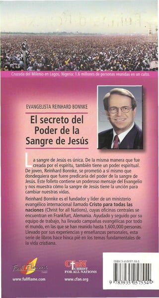 El documento habla sobre el poder de la sangre de Jesús. Explica que la sangre de Jesús es la única sangre que es descrita como "preciosa" en la Biblia. También describe que la sangre de Jesús es diferente a cualquier otra sangre porque Jesús no tuvo padre terrenal y su sangre no heredó características genéticas. Finalmente, el documento explica que aplicar la sangre de Jesús a nuestra vida nos limpia de pecado y nos da redención.