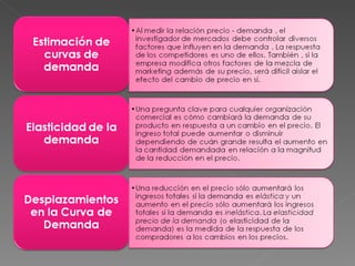 El documento habla sobre la fijación de precios como elemento clave de la mezcla de mercadotecnia. Explica que existen diferentes métodos para establecer precios tomando en cuenta factores como los costos, la demanda del mercado, y los precios de la competencia. El objetivo final es seleccionar un precio que maximice las ganancias de la empresa.