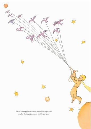 1) El documento presenta un resumen de un cuento del escritor francés Antoine de Saint-Exupéry titulado "El Principito".
