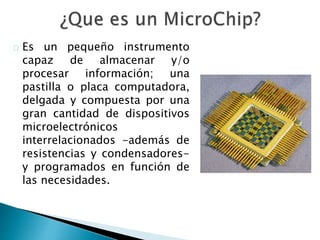 El documento describe las partes principales de un procesador, incluyendo el microprocesador, la unidad central de procesamiento (CPU), los registros, la memoria caché y las instrucciones. Explica que la CPU es el cerebro de la computadora y contiene un microchip que procesa información numérica y ejecuta instrucciones almacenadas en la memoria a altas velocidades medidad por un reloj interno. También describe las diferentes arquitecturas de los procesadores y el desarrollo de procesadores multi-núcleo.