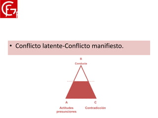 Este documento describe el proceso del conflicto, incluyendo las etapas de escalada y desescalada. Explica que la escalada implica un incremento de la violencia y comportamientos competitivos, mientras que la desescalada busca reducir la tensión y reconstruir la relación entre las partes para transformar el conflicto. También analiza conceptos como el punto muerto y la polarización.