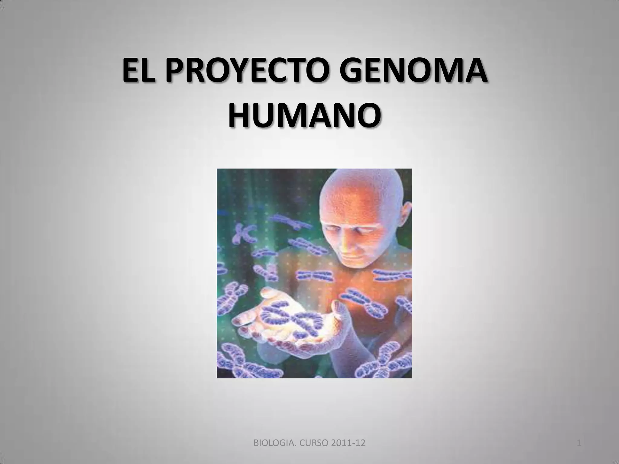 El documento describe el Proyecto Genoma Humano, cuyo objetivo era identificar los genes humanos, localizarlos en los cromosomas y secuenciar la secuencia de nucleótidos de cada gen. El proyecto culminó en 2003 con la publicación de la secuencia completa del genoma humano por un consorcio internacional y una empresa privada, lo que representó un hito importante para la ciencia al descifrar el "libro de instrucciones" de nuestra especie.