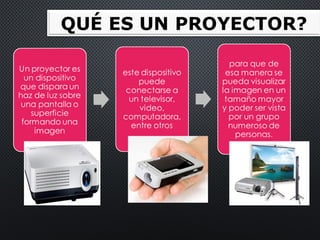 El documento proporciona instrucciones para conectar un proyector a un ordenador portátil y proyectar la pantalla del ordenador. Explica cómo conectar los cables VGA y de alimentación, seleccionar la entrada correcta en el proyector, y ajustar la proyección. También brinda consejos sobre el cuidado de la lámpara y recomendaciones generales sobre el uso del proyector.