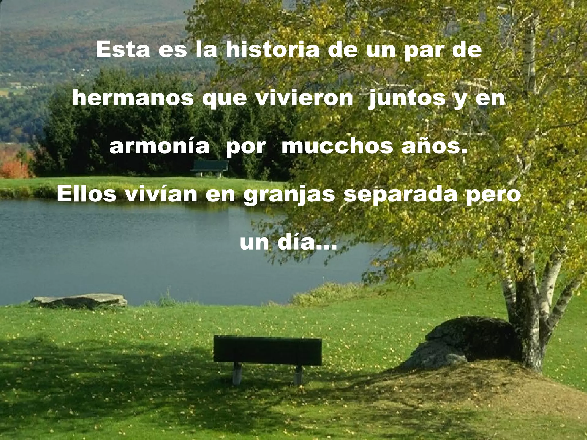 Este documento narra la historia de dos hermanos que cultivaban juntos por 40 años pero tuvieron un conflicto que los distanció. Un carpintero desconocido llegó ofreciendo su ayuda y el hermano mayor le pidió construir una cerca para no ver más a su hermano, pero en vez construyó un puente reconciliándolos. El mensaje final enfatiza la importancia de perdonar, valorar a los demás y crear armonía.