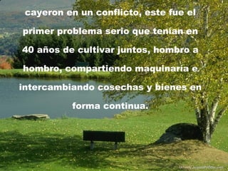 Dos hermanos que habían vivido juntos en armonía por 40 años tuvieron un conflicto que los llevó a dejar de hablarse por semanas. Un carpintero llegó ofreciendo su trabajo y el hermano mayor le pidió construir una cerca para no ver más a su hermano, pero en lugar de eso el carpintero construyó un puente que unió sus granjas de nuevo, reconciliándolos.