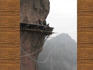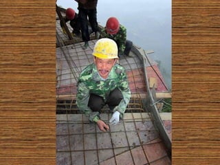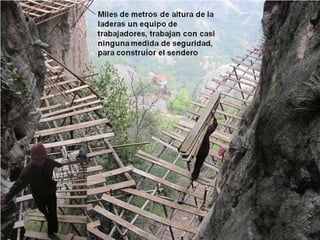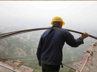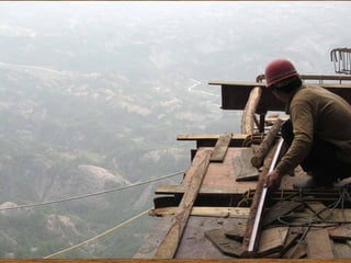El documento habla sobre la posibilidad de accidentes en trabajos peligrosos que se realizan para beneficiar al país, y bendice a los trabajadores que arriesgan sus vidas sin importar los riesgos con el único fin de hacer algo por su nación.